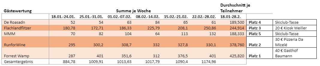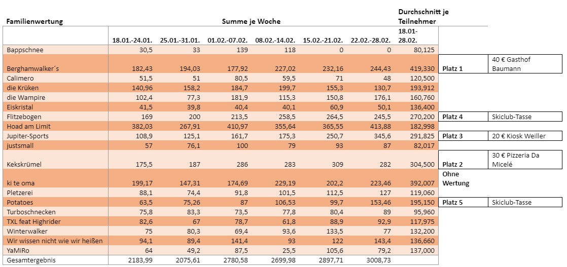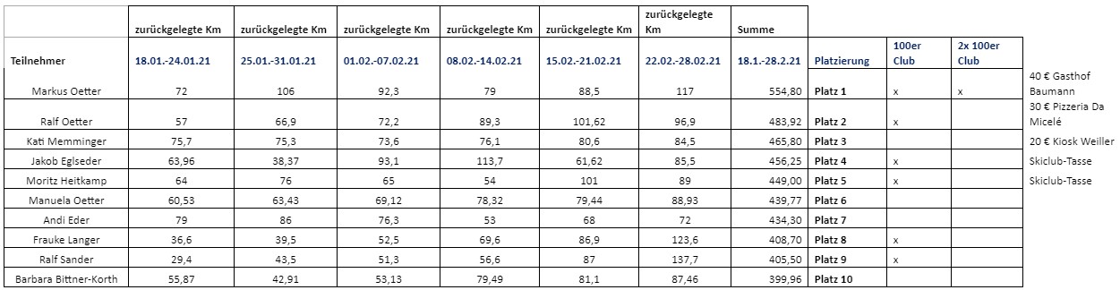 Die Gutscheine und Skiclub-Tassen für die Erstplazierten werden in den nächsten Tagen von Kerstin, Voitl, Marc und Christian verteilt.
